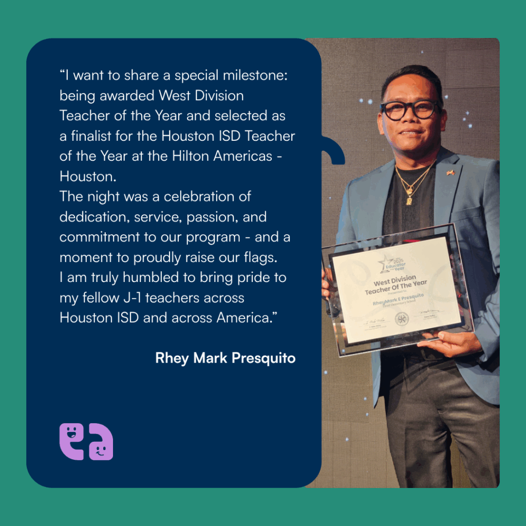Real examples show the extraordinary value that international teachers and classroom assistants from abroad bring to U.S. schools. Their commitment, preparation, and creativity have earned recognition across multiple schools and even at district and state levels.